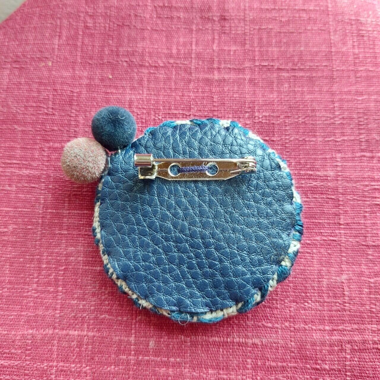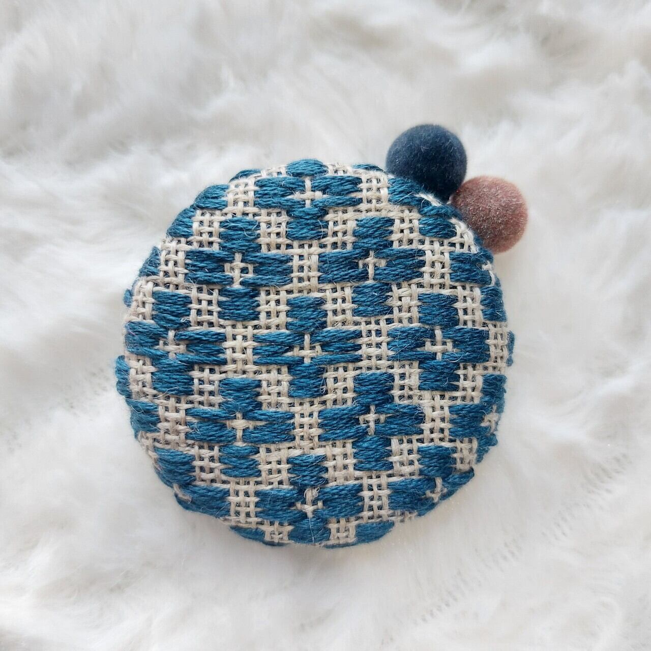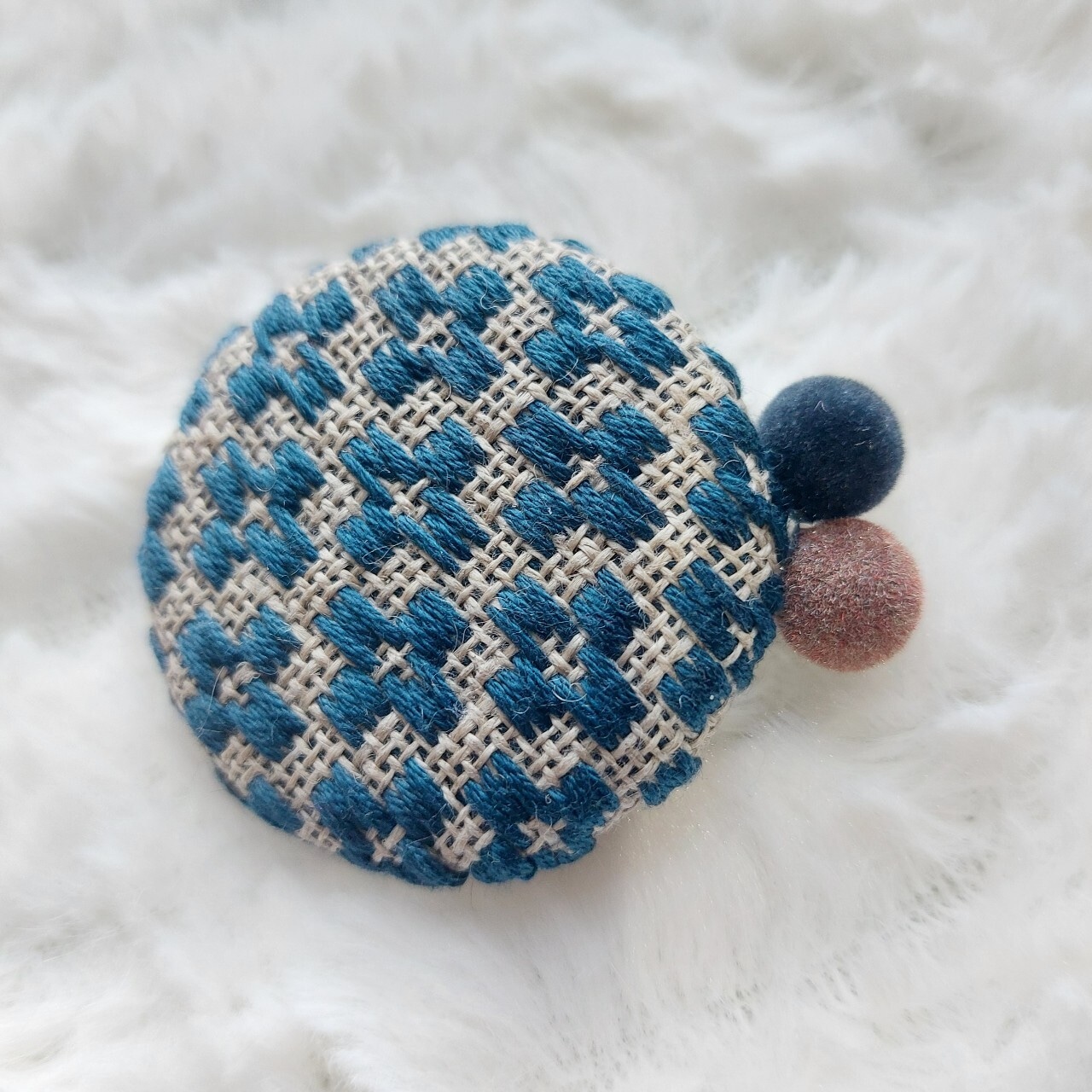 こぎんの模様はベーシックを土台に、刺す糸色のインスピレーションとそこにプラスされるアイテムと世界観は正に自由♪作者が思うままに遊んで仕上げた二つとないブローチです♪